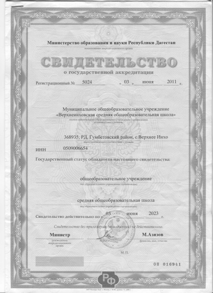 | Адрес местонахождения образовательной организации* | 368935, РД,Гумбетовский район, с. Верхнее-Инхо,ул.Аслудина Магомедова №26 д.74, |